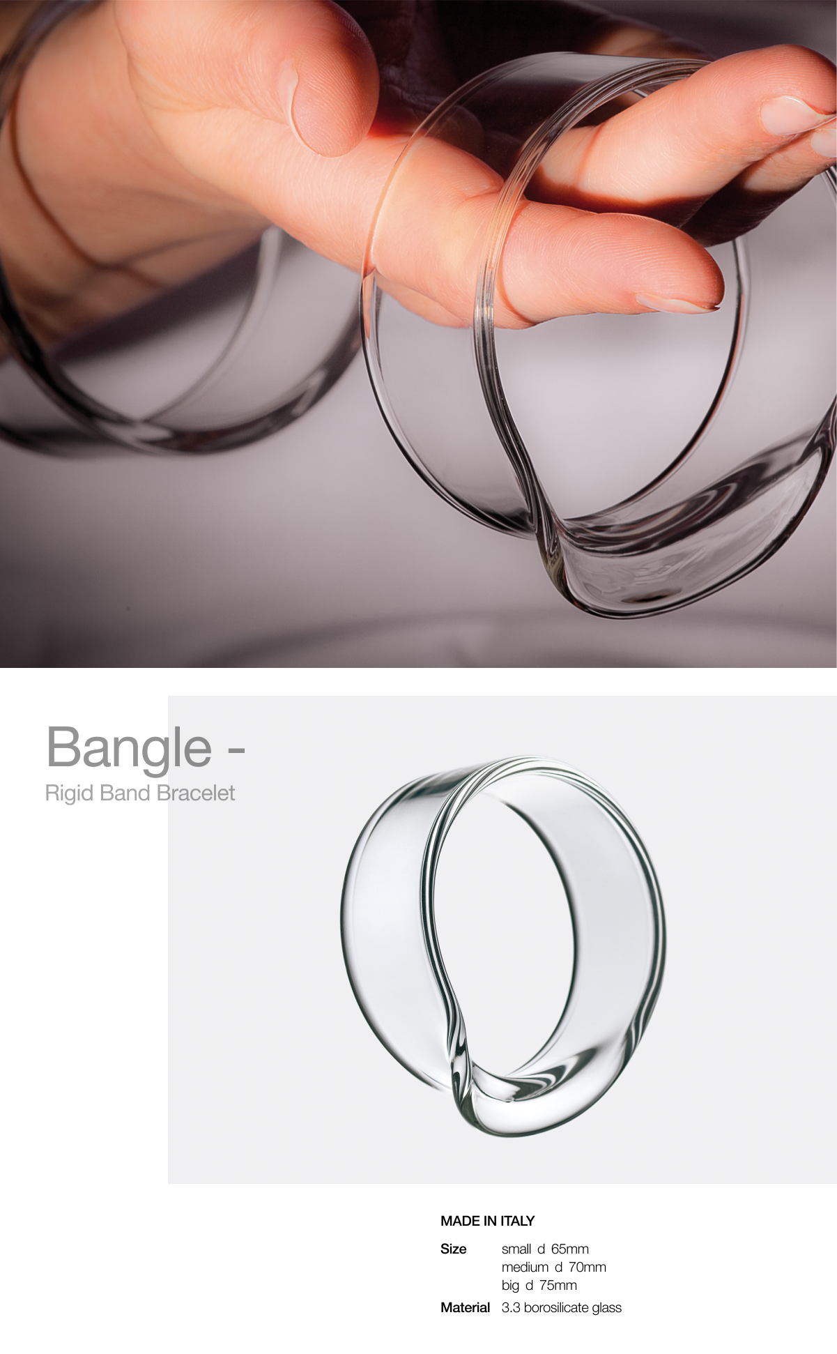뱅글, 완벽한 미니멀리즘 순수함과 단순함의 특별한 표현. Bangle은 소재와 디자인이 잘 조화된 두꺼운 붕규산 유리로 만든 팔찌입니다.
